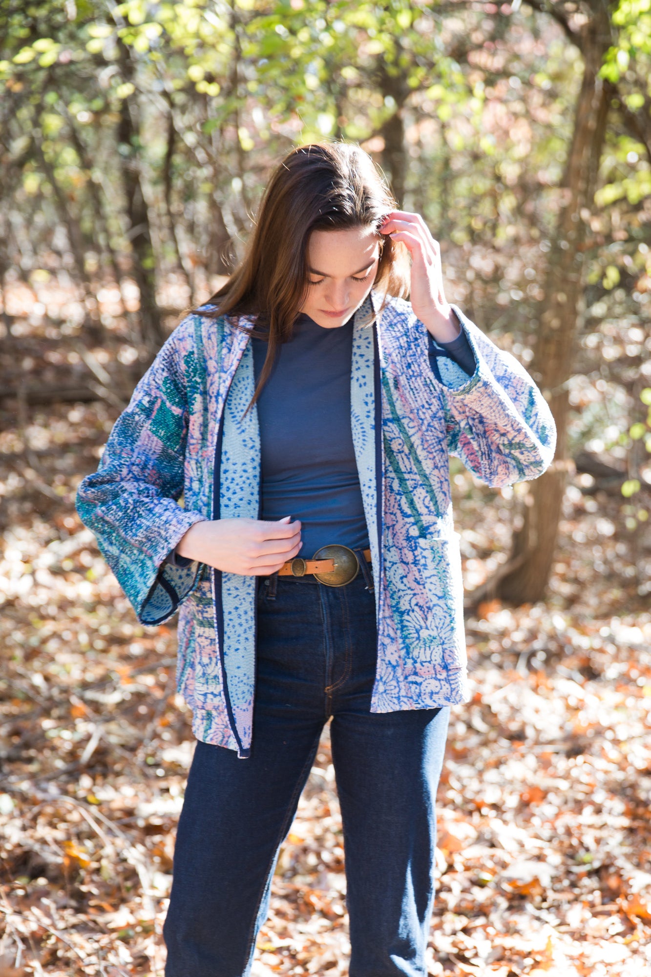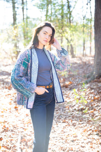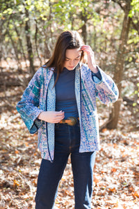 Vintage Kantha Quilt Jacket in Garden