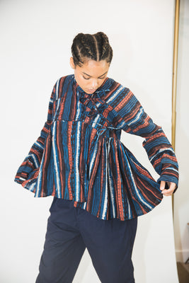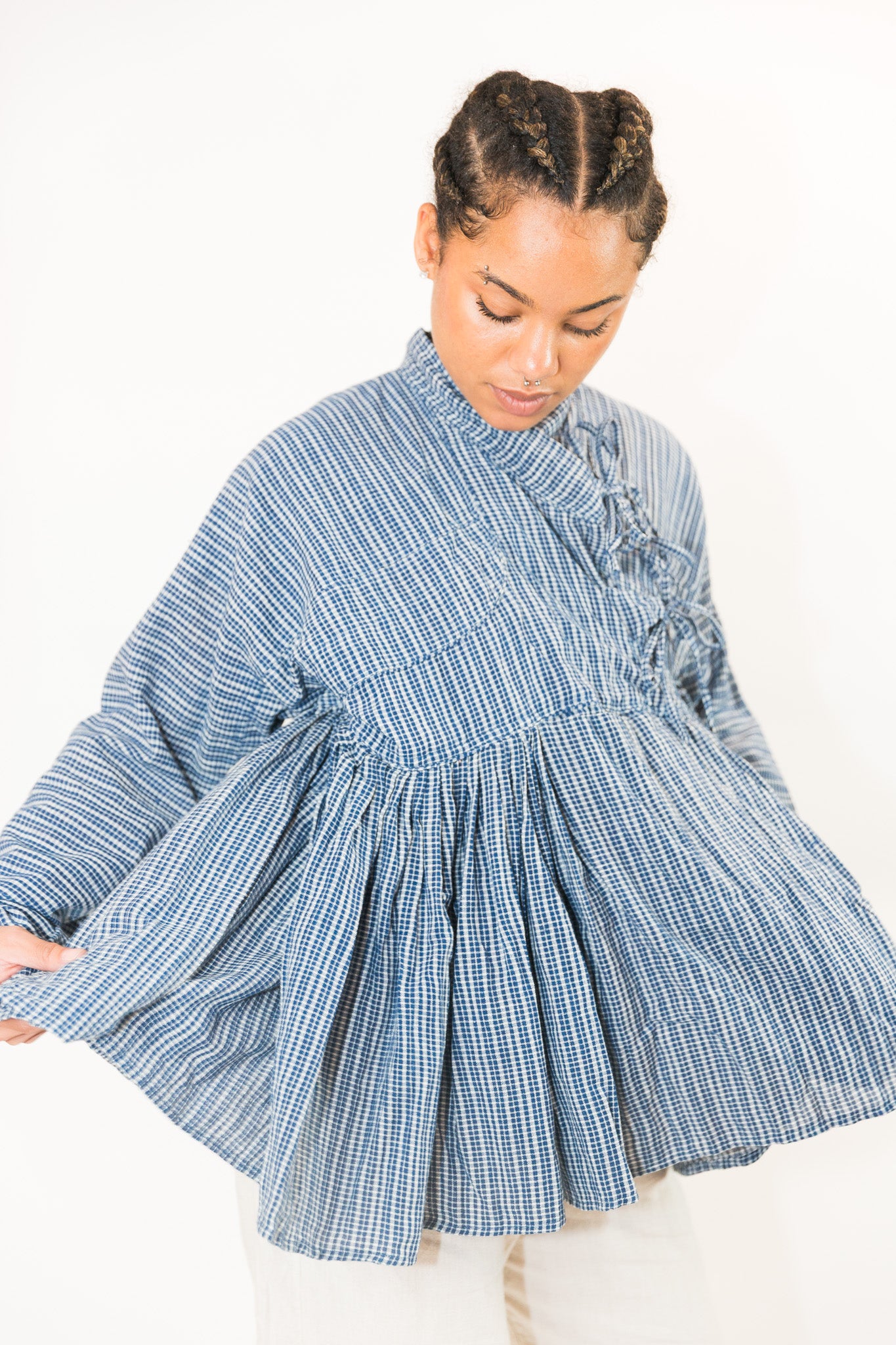 Indigo Stripes Hand Block Print Kediya Top/Jacket