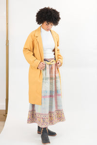 Crafted from handpicked vintage kantha quilts, each skirt is truly one-of-a-kind. The flowing midi circle silhouette moves with ease, while frayed edges and visible patches add character rather than conceal it. These details are not flaws, but the essence of its appeal.